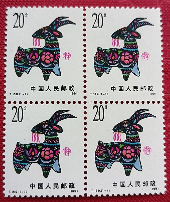 T159一轮羊方连,原胶,品相好。