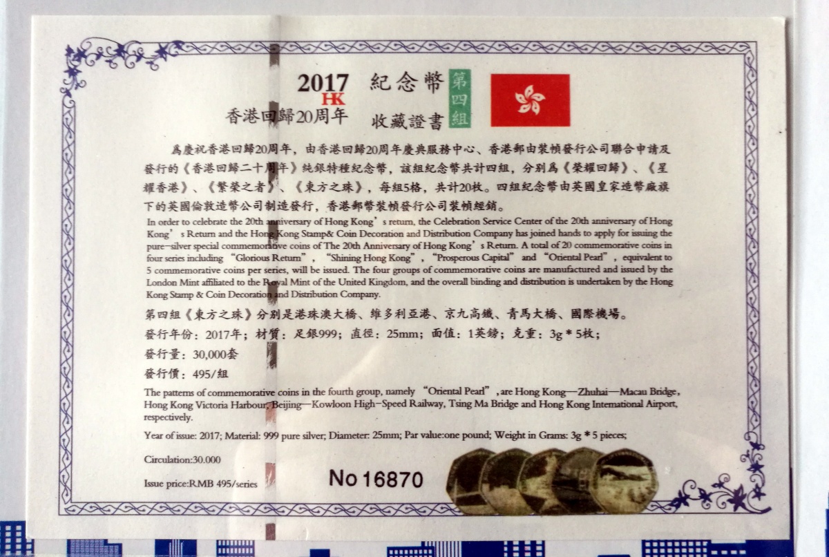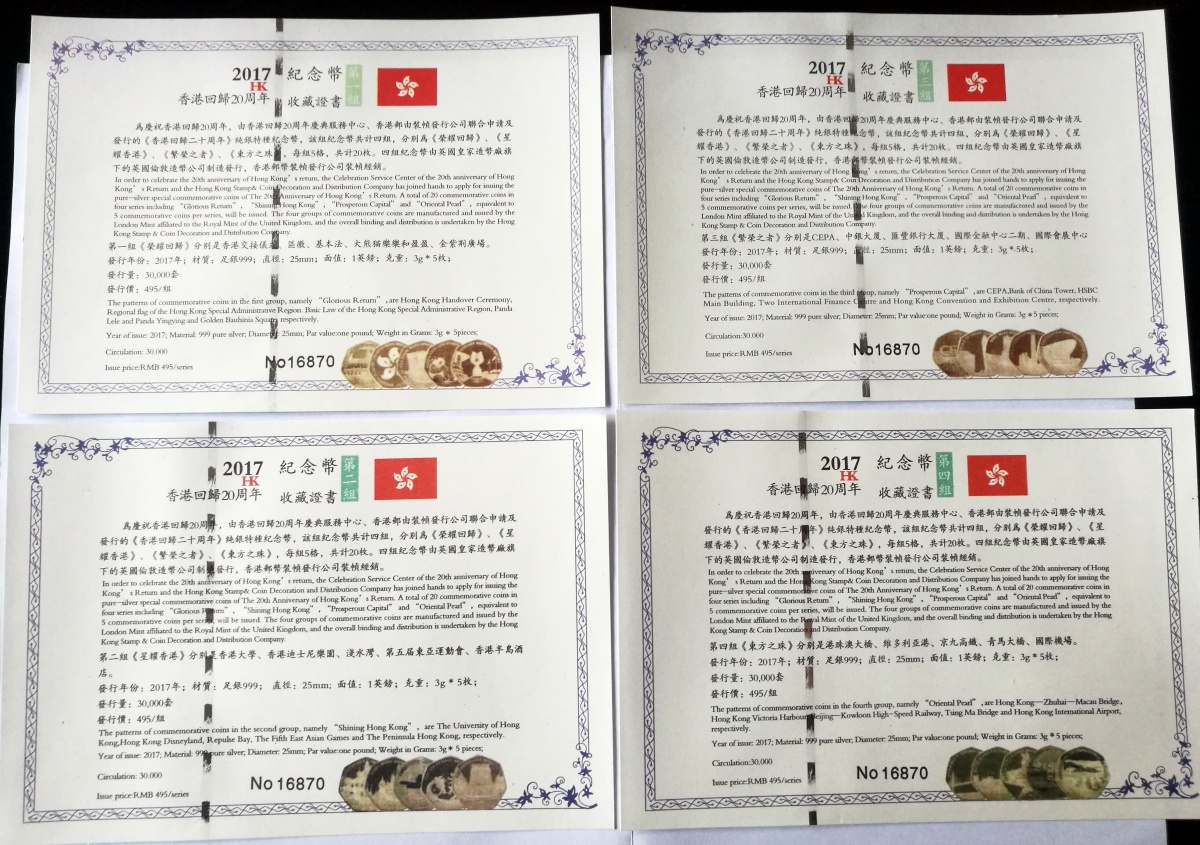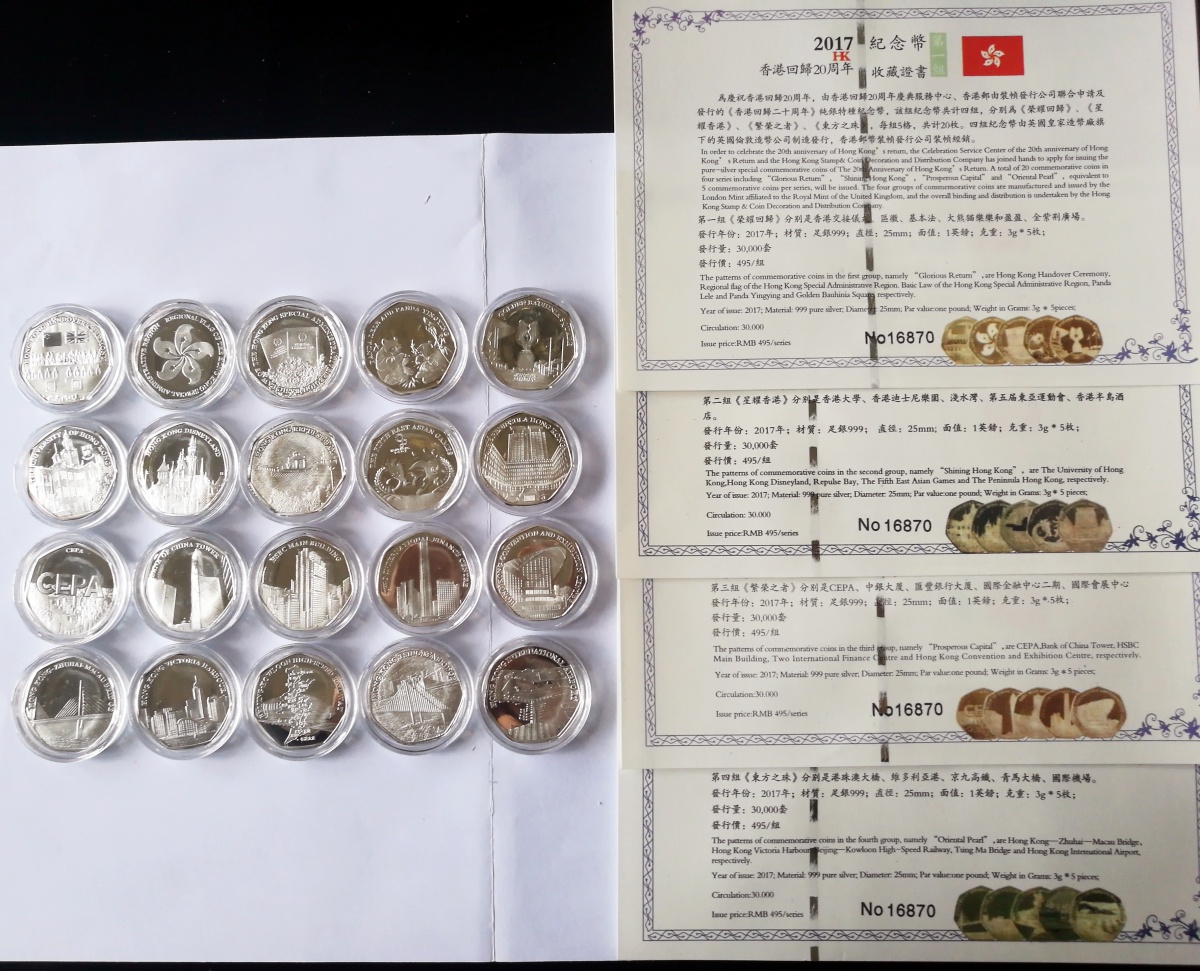 → 2017香港回归20周年999足银纪念币一套