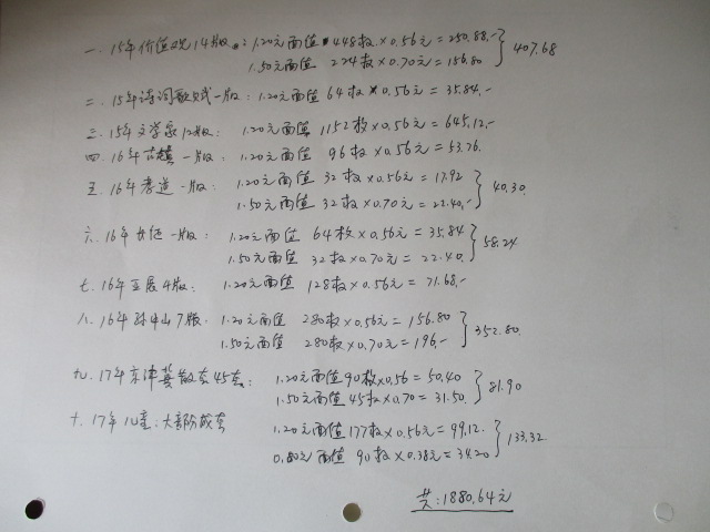 说明:版票都成套,对号。面值1.20元0.56元一枚,面值1.50元0.70元一枚。