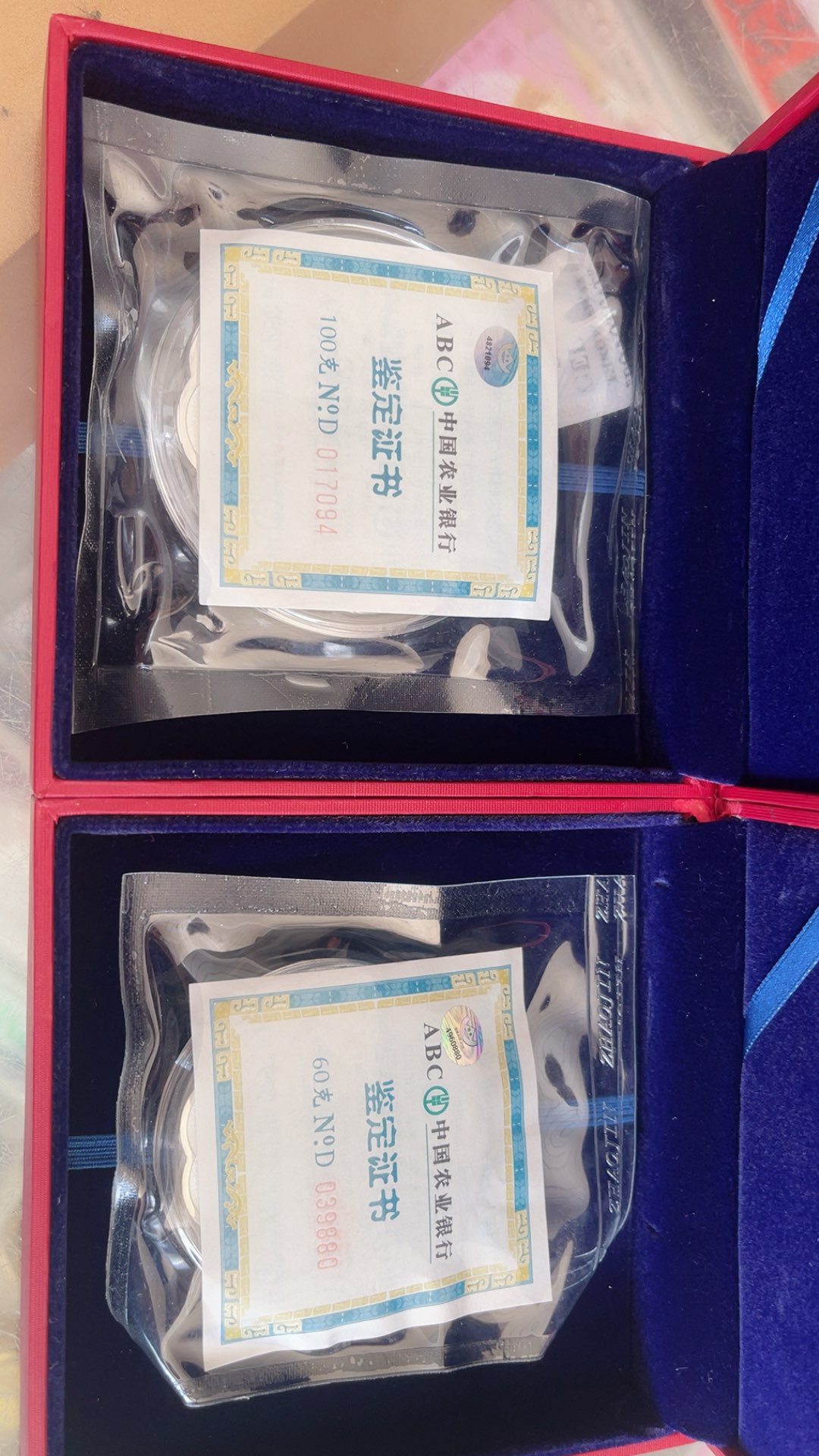 如图银币:100克+60克+50克+31克+15.5克+6.8克=263.3*19元=5002元包顺丰,当天有效,1小时后需要电话确认