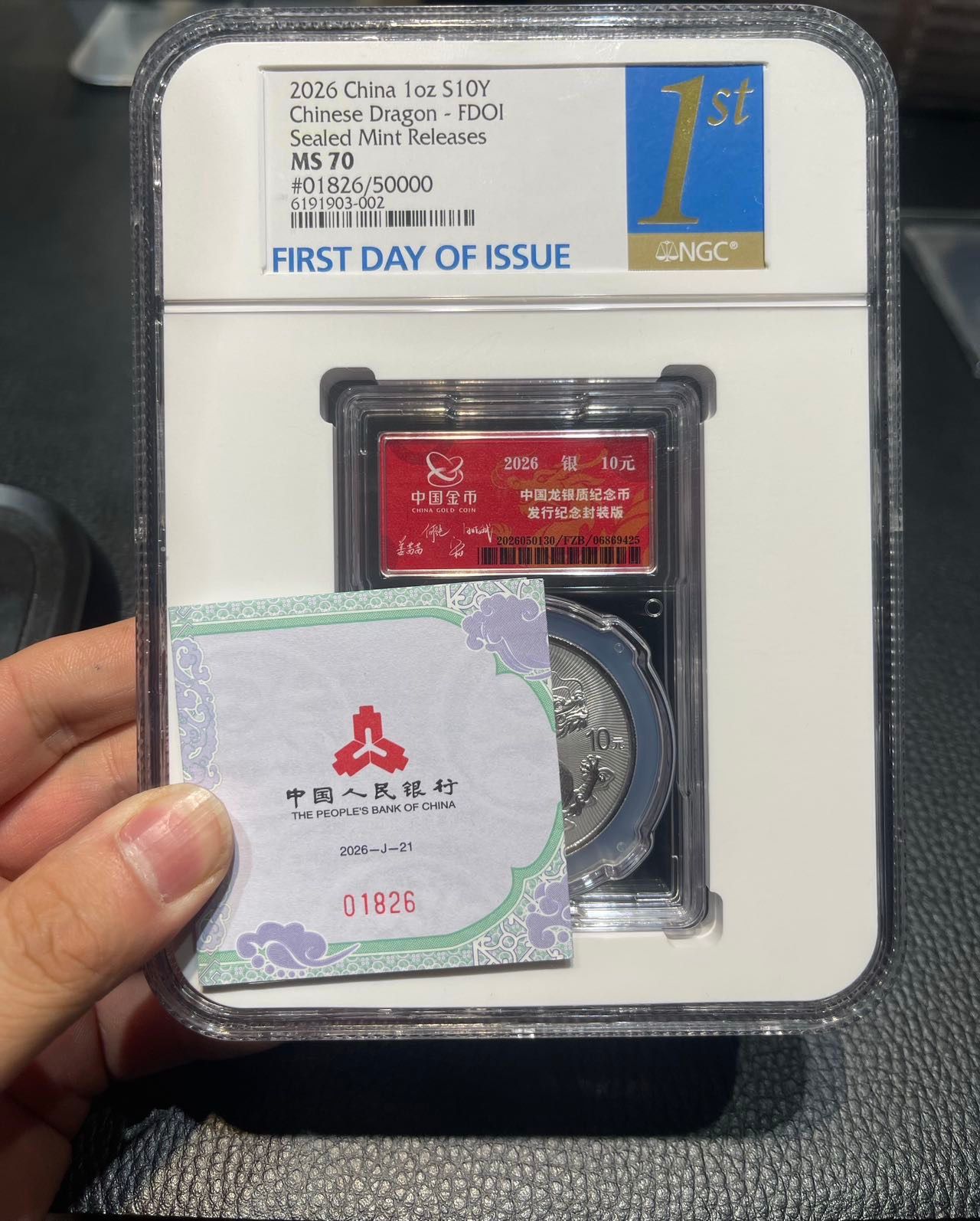 → 26年封装龙首日金兰70分,01826靓号,要发26年