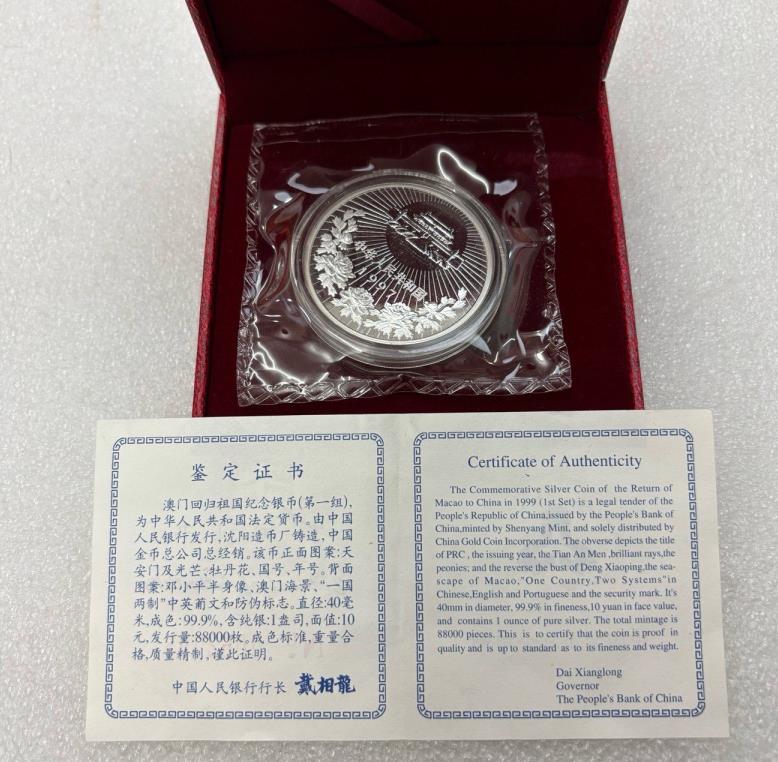 澳门回归第一组1盎司银币1枚