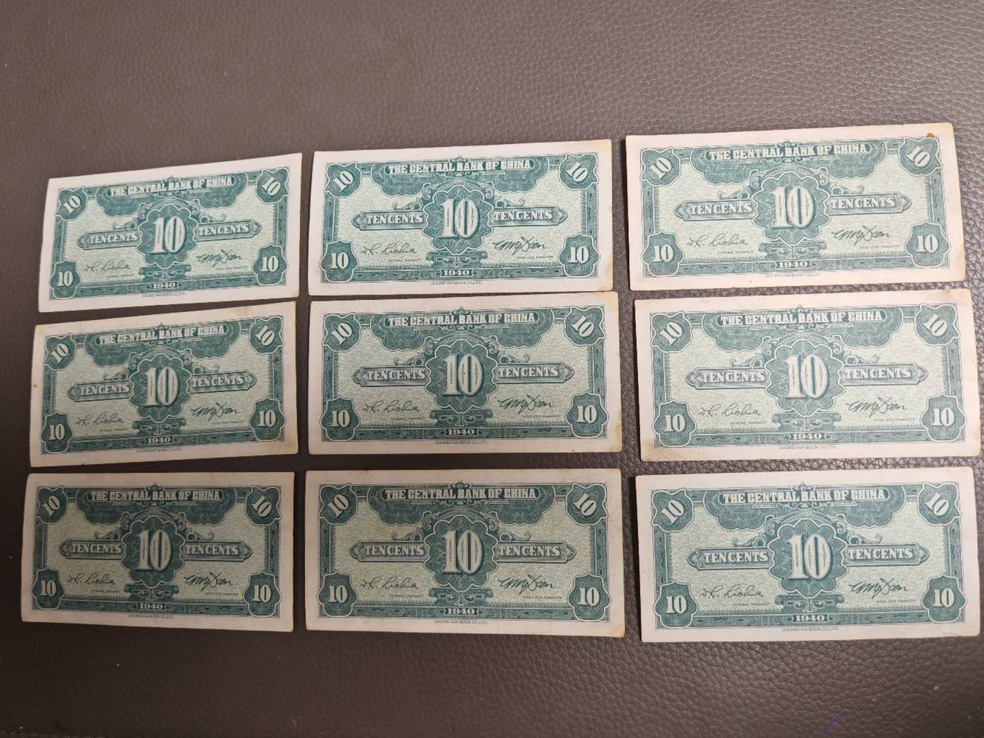 民国中央银行壹角9张,带豹子号555,有6连,+3连, 全部保真保老一起出230