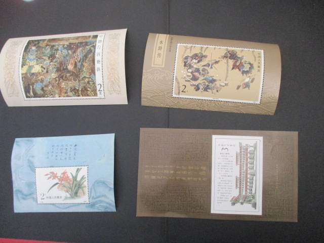 五。壁画右下软折,水浒和兰花各一个纸质点,编钟软折。4枚90元。