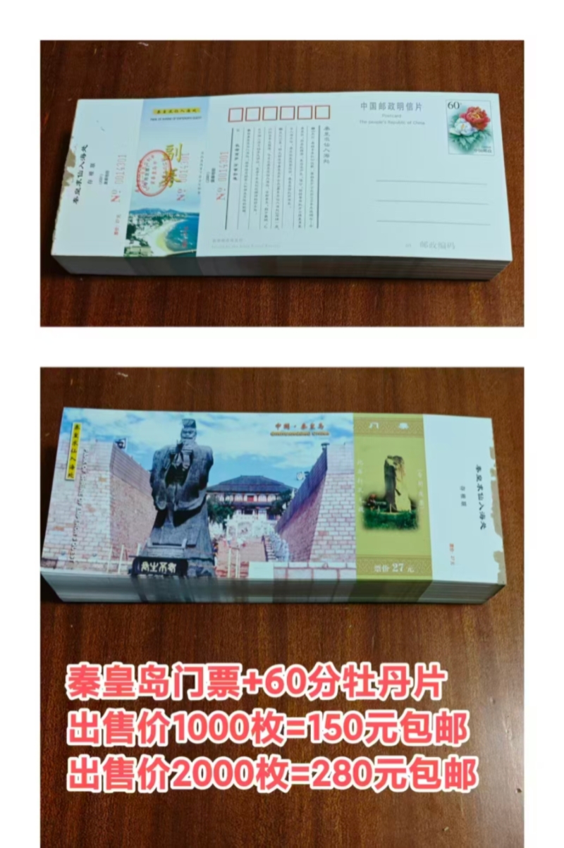 → 秦皇岛景点门票明信片1000枚=150元包