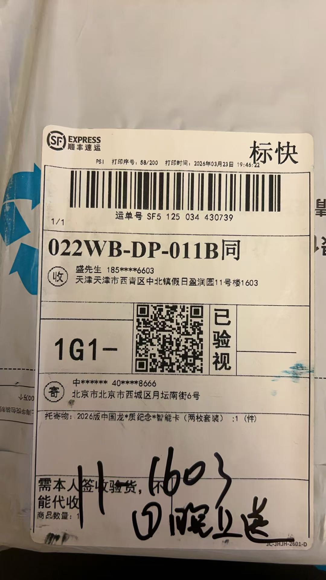 姓名: 田文奇(已通过身份核查,号码一致)