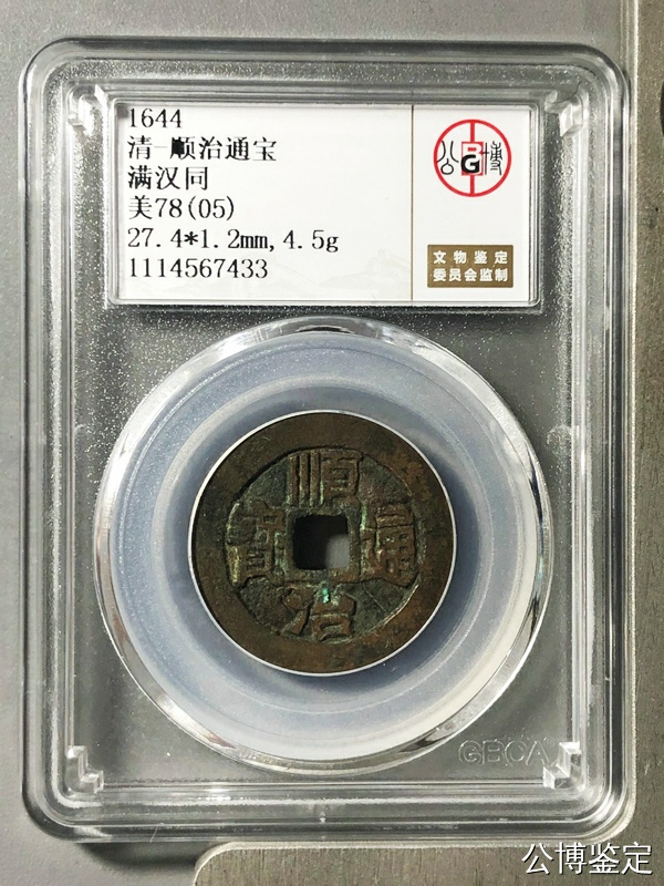 北京公博评级顺治壹枚,满汉同,老宅房梁传世品