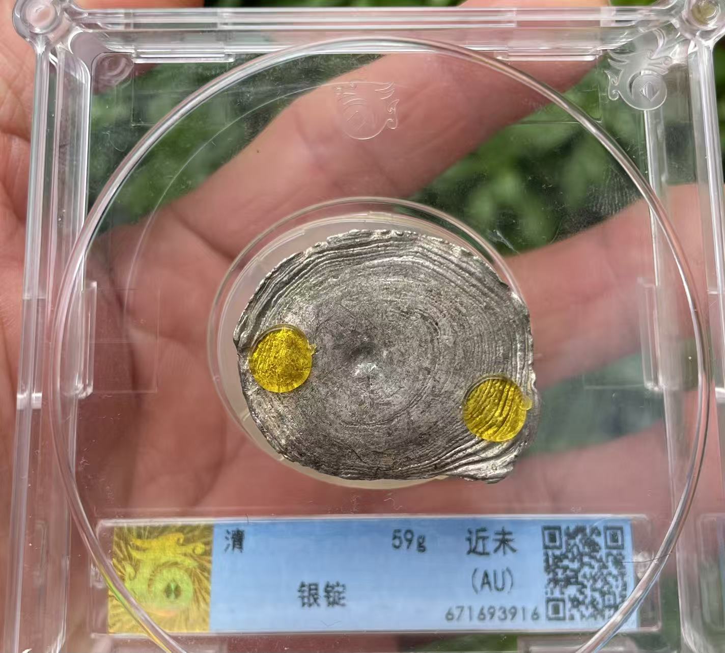 → 两枚评级银锭46克,59克X33元。