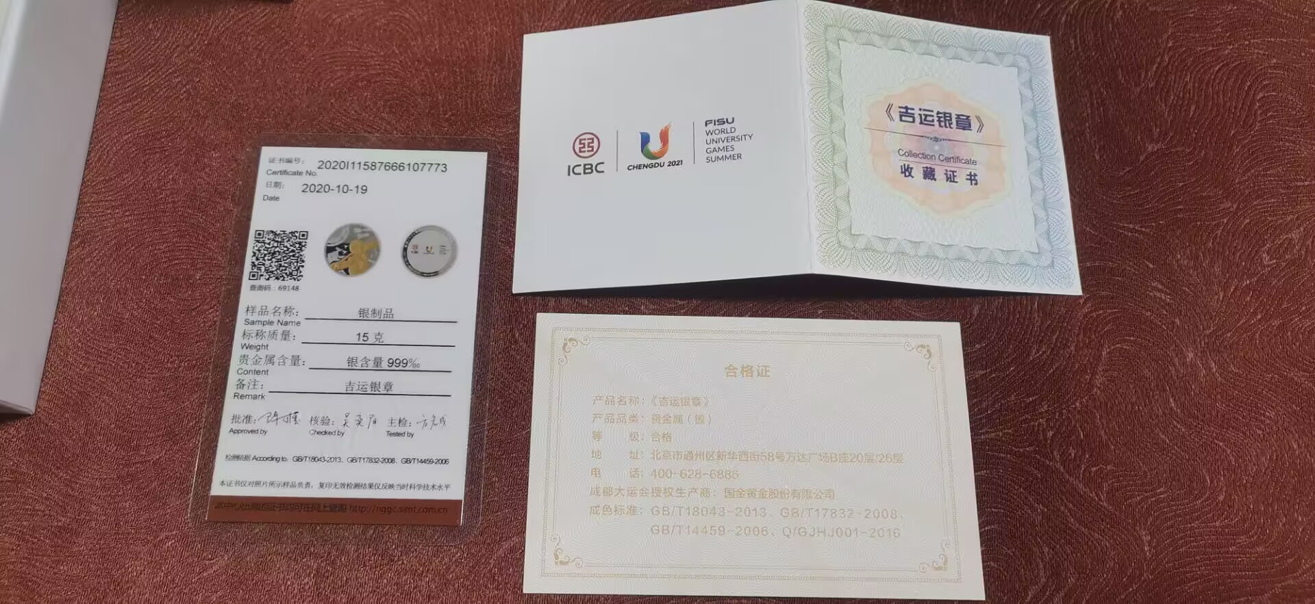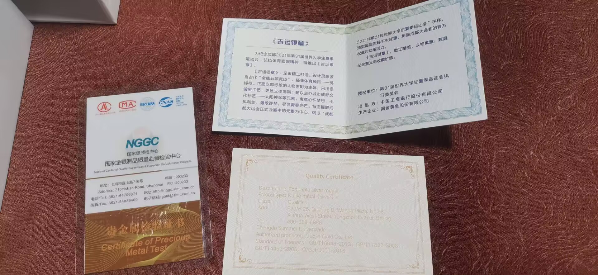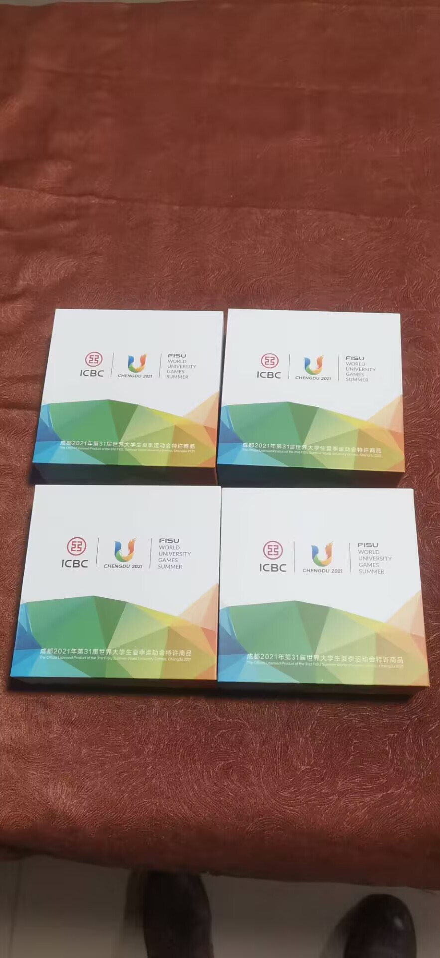 2021年大运会  实物如图 盒子证书齐全 15克纯银镀金一盒 合计4盒 *290每盒