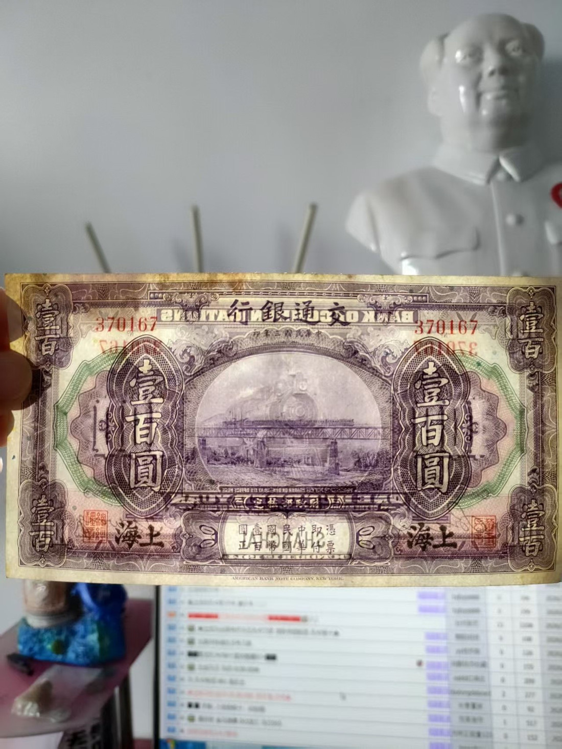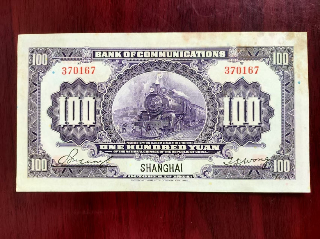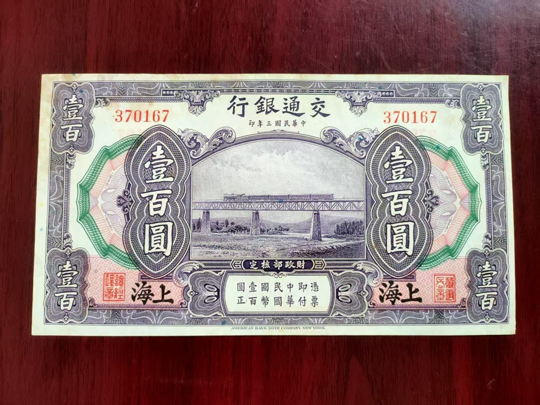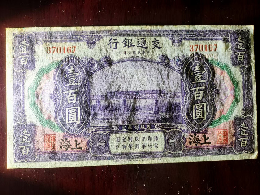 → 售交通银行100圆 黑上海 1张