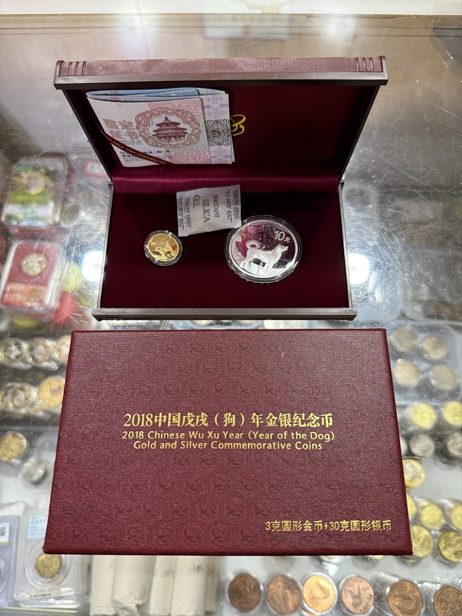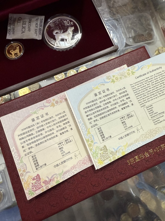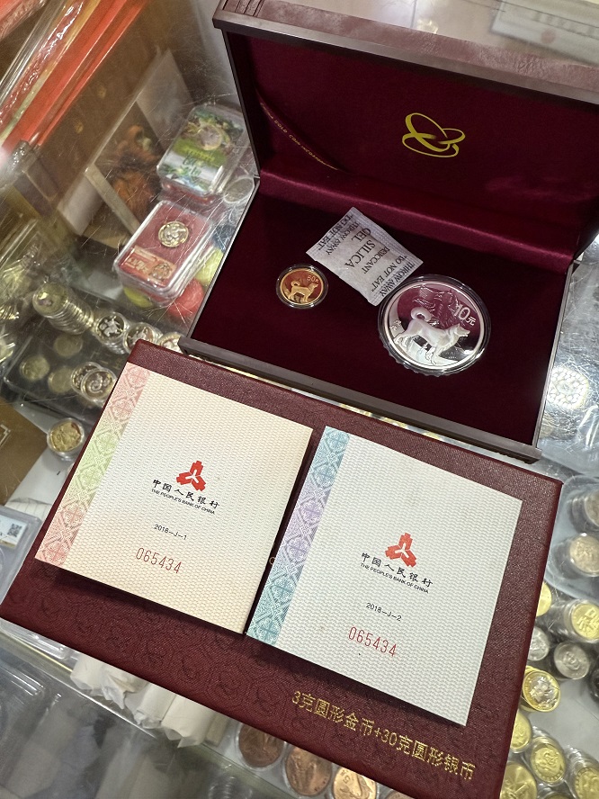 → 售2018狗年本金银纪念币一套。