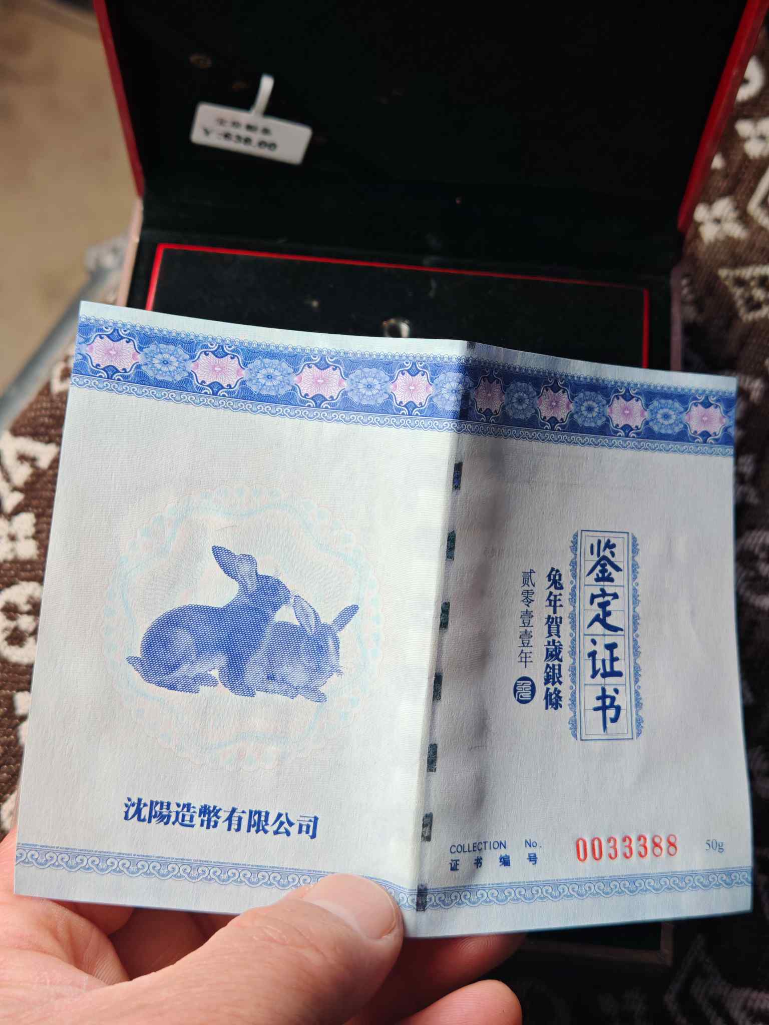 出2011年兔年50克银条,证书,外盒都有