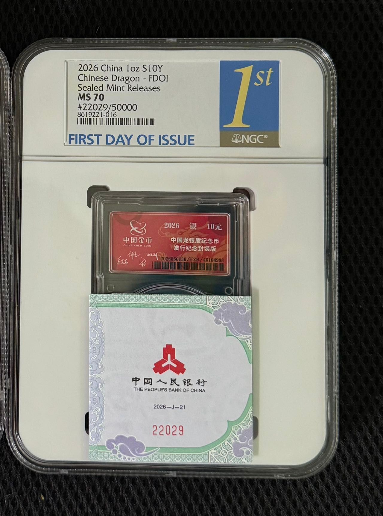 出26封装龙金兰首日70分靓号,22029,年份号龙珠龙二