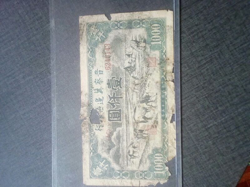 出民国家35年晋察冀边区银行一千元(品差)牧马图一枚。