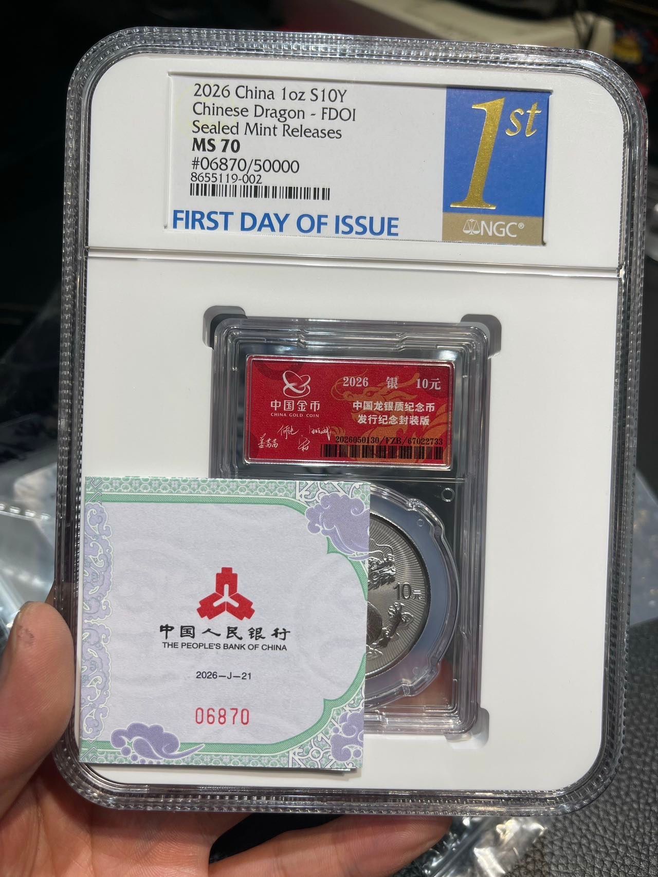 6500出一枚26封装首日70分金钩王,06870