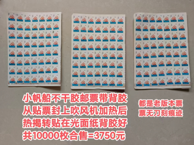 → 0.375出售小帆船不干胶邮票带背胶,可直接贴票用
