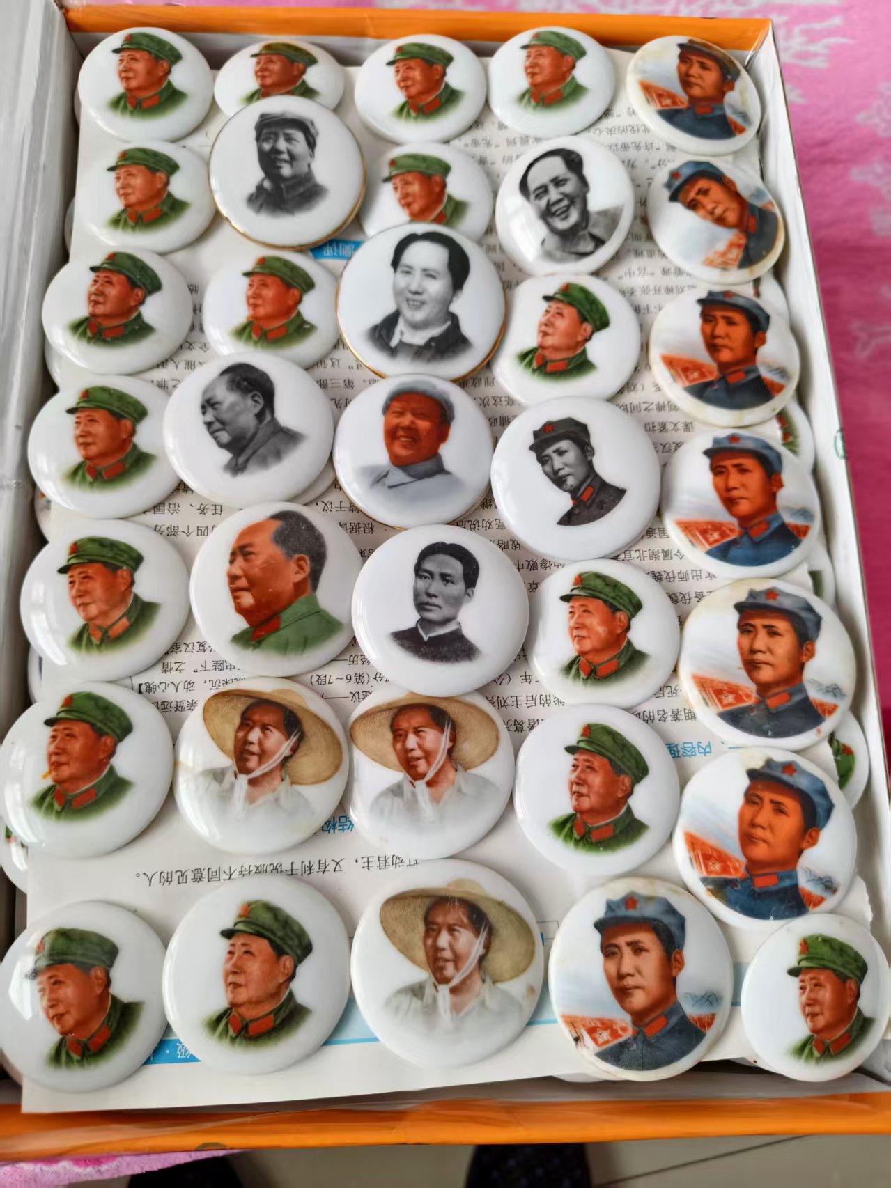 景德镇瓷像章,文革时期1968年左右的。包老包真文革章,直径4厘米到5.2厘米之间,大多数都是4.6厘米以上。背面的别针大多数都没有了,低售19元一枚,每一个品有大小,全是彩色的,草帽大约占1000多枚。有的品种数量多,有的品种数量很少。店网同售,电联或者微信确认为准。需要量大的可以优惠