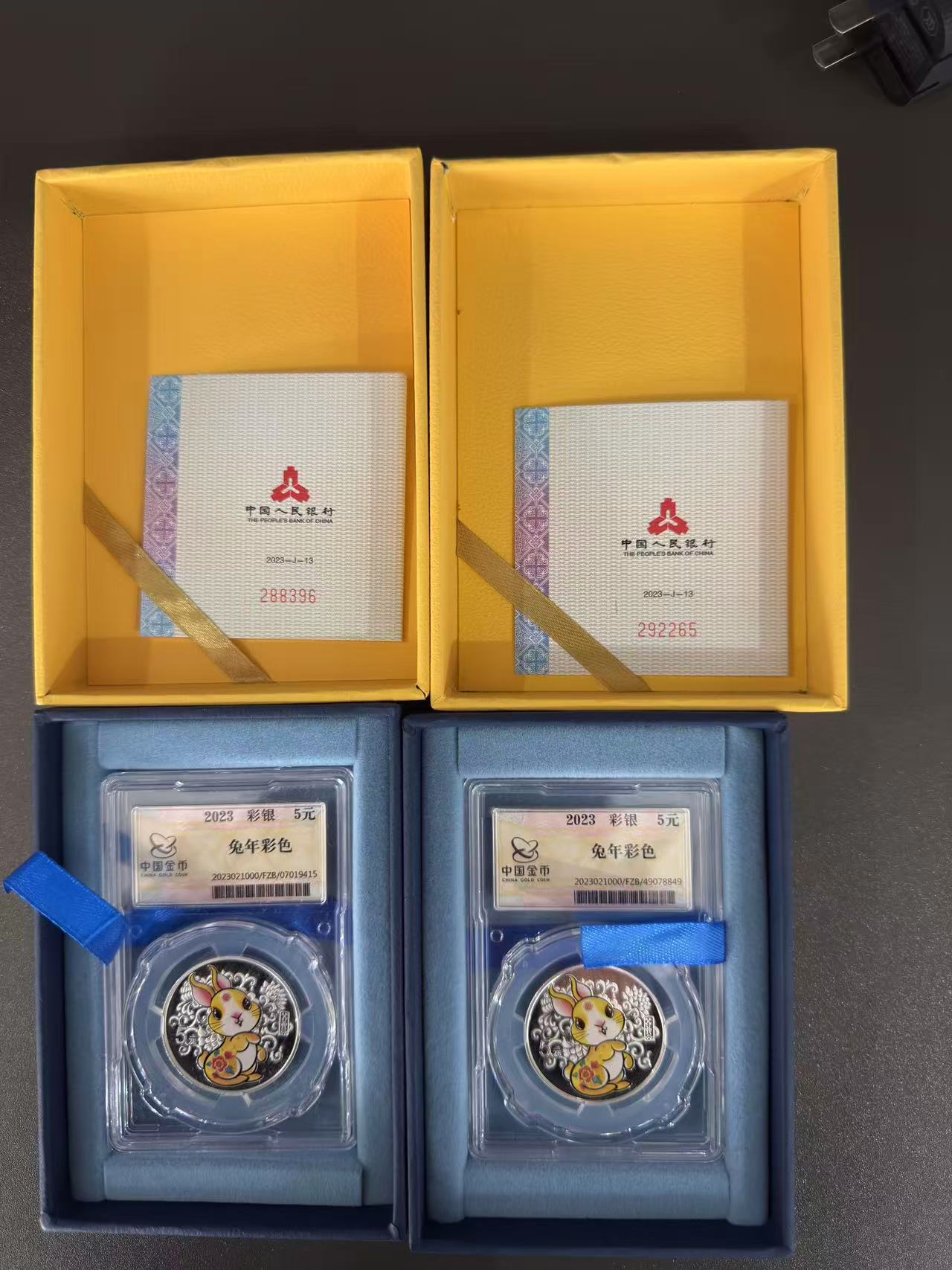出2023年封装兔彩银币2枚 证书288396 292265 550元一枚,两枚一起出包顺丰