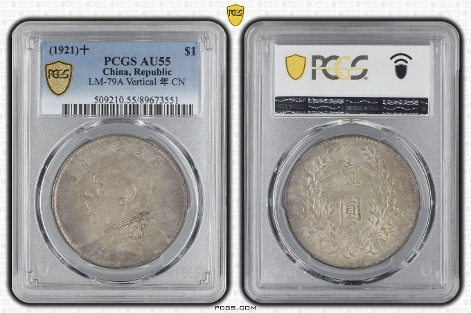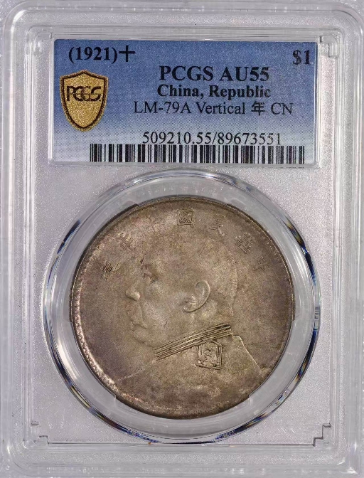 → 大名誉品:PCGS-AU55十年竖点年 紫罗兰包浆带原光 售价45000元