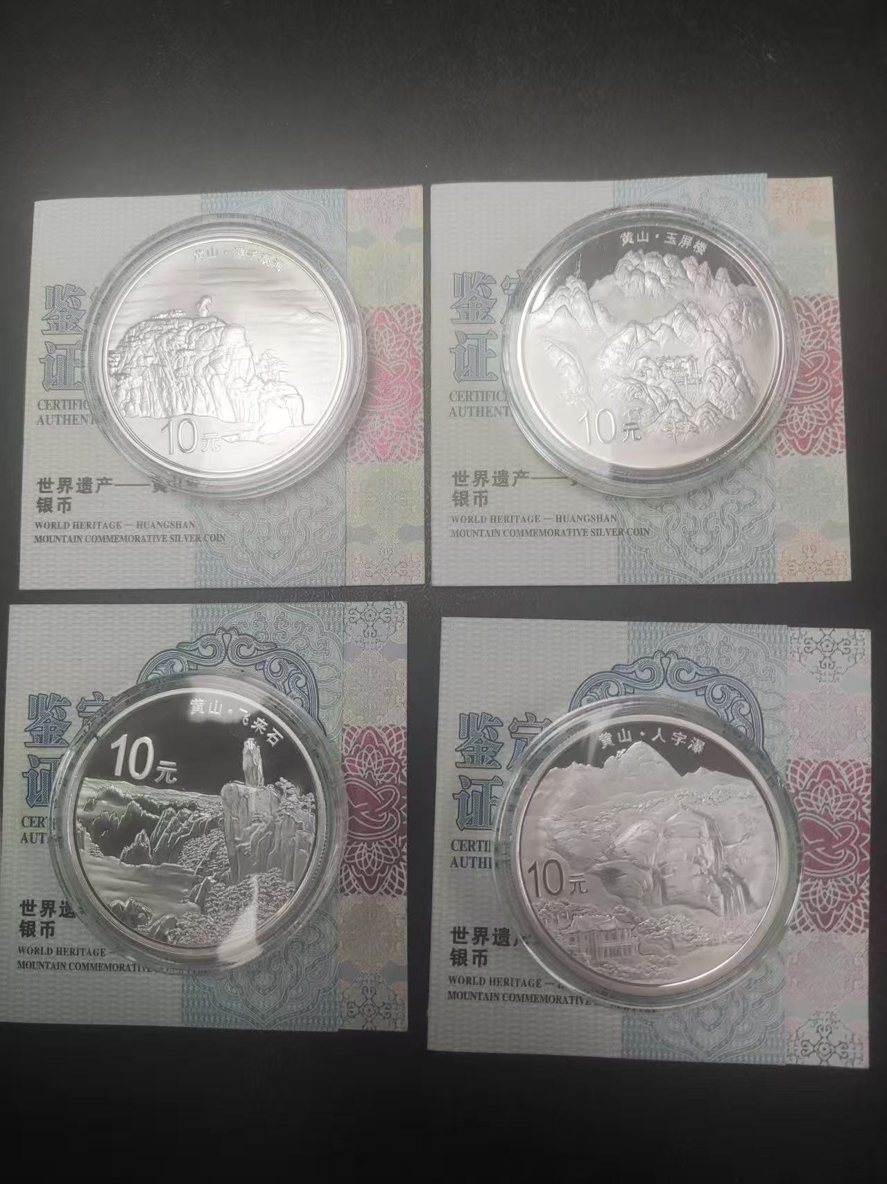 黄山纪念银币一组4 枚,13 年出品,品好售3000 元包邮!