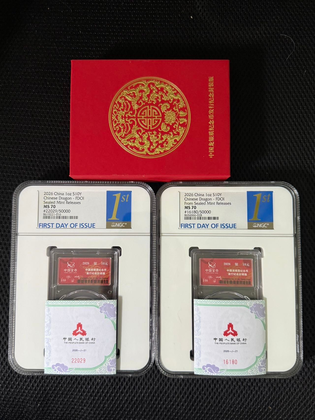 出2枚26封装首日评级70分靓号,22029,16180,8000一枚