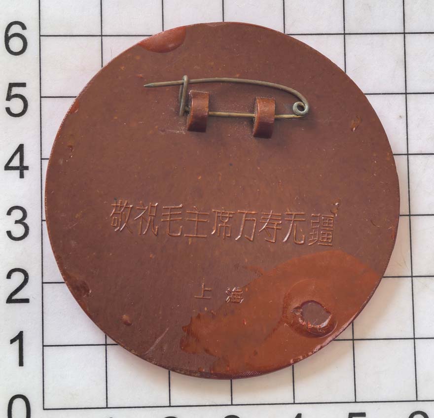 直径57毫米,手工绘漆,背面有上漆痕迹。背文“敬祝毛主席万寿无疆”上海。完好美品如图,按图发货