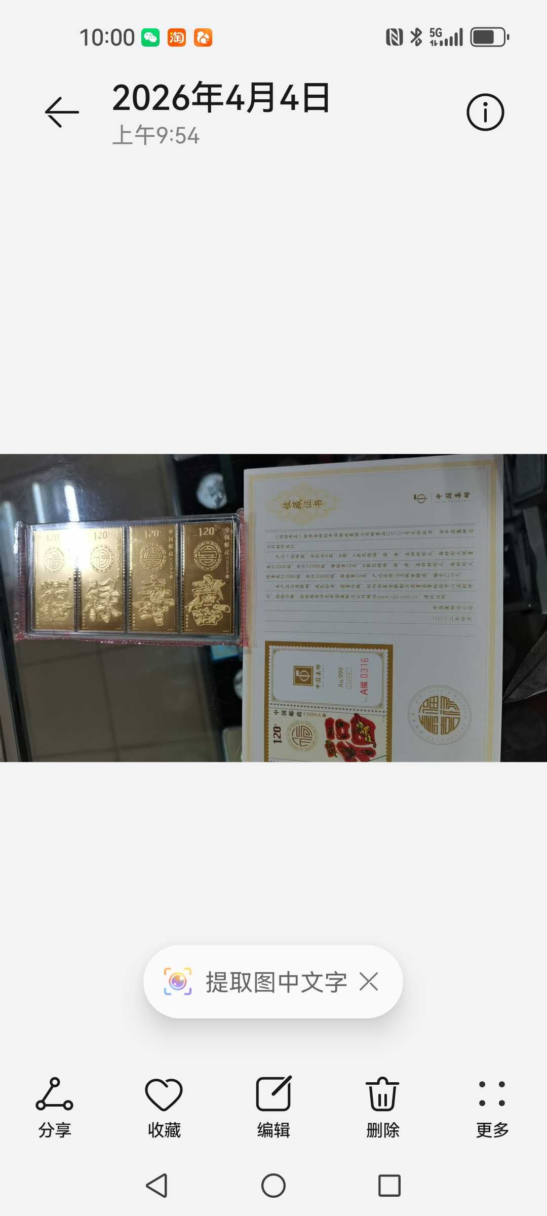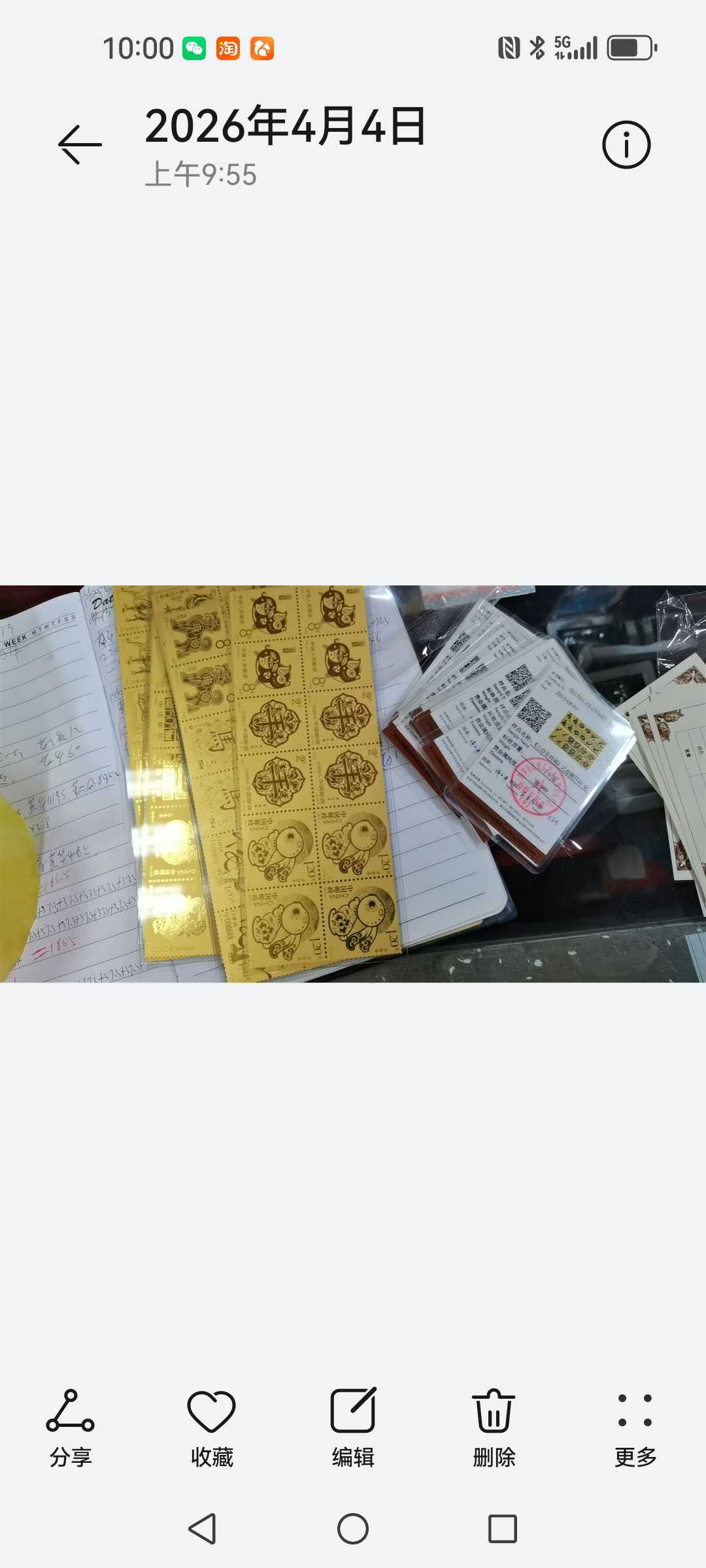 → 。。售中国邮政发行金钞,金条请看图。。