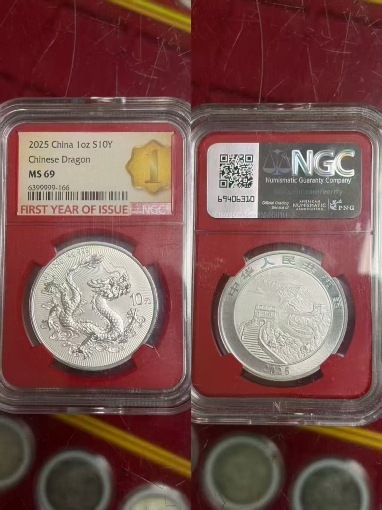 25中国龙银NGC评级69分,首日红标,号码有99999,980包品包邮