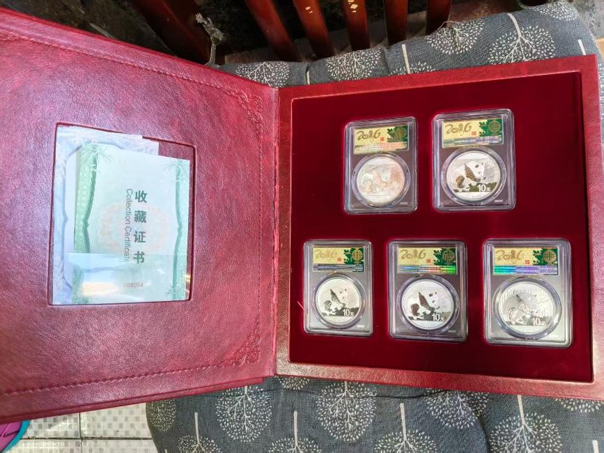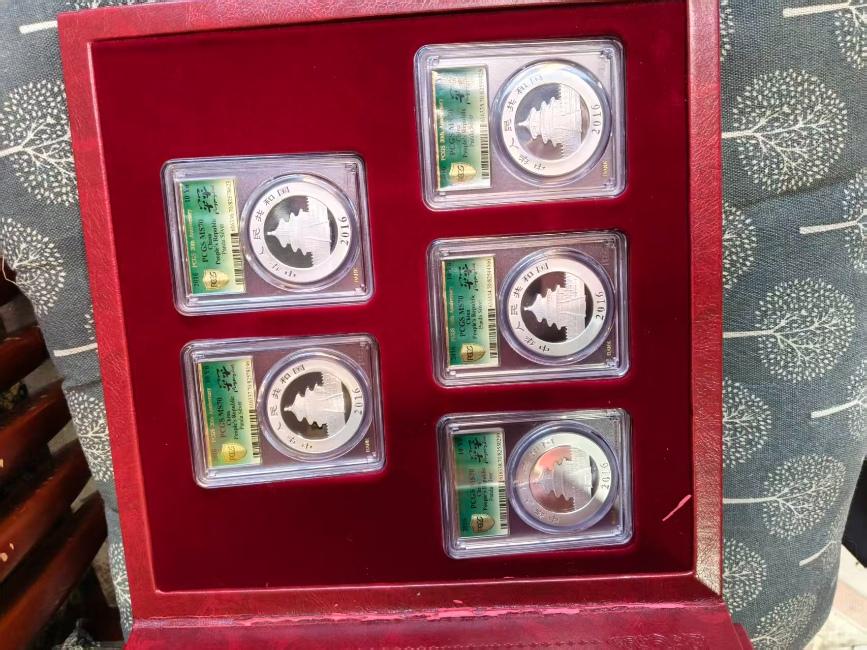 出16年pcgs金盾评级五福临门熊猫银币620一枚,一共五枚,证书齐全品相好