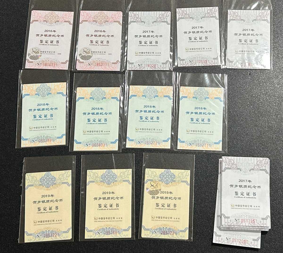 福字币170枚,全部原证书号码好,无册子,2016年20枚,2017年80枚(有60枚是原盒未开),2018年40枚,2019年30枚