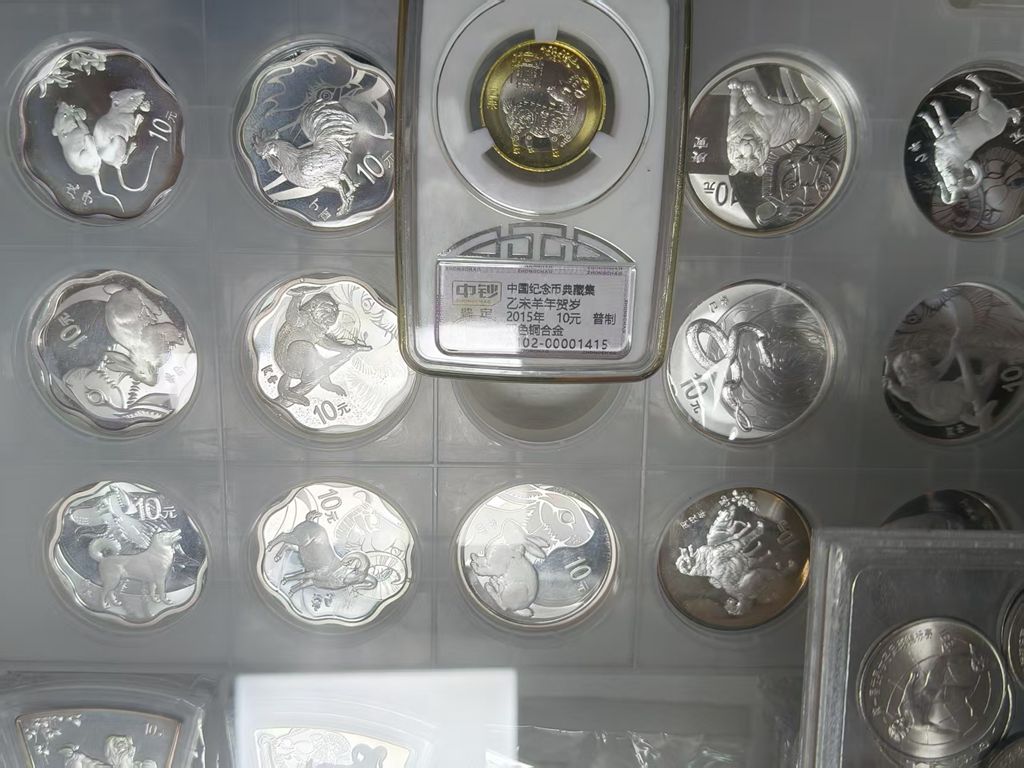 出07年扇银猪2枚750元/枚 ,09年扇银牛3枚750元/枚。13年扇银蛇2枚750元/枚。14年扇银马3枚800元/枚。15年扇银羊2枚650元/枚。15年本银羊2枚700元/枚。16年本银猴2枚650元/枚。08年梅花鼠1枚800元/枚。15年梅花羊750元/枚。京剧一组1套4枚,原证原盒4000元。神话一三组2套,原证原盒3300元。青铜器一二三组各一枚,原证原盒2300元。龙文化银1枚800元。彩迎春图1枚750元。兵团60年银800元。01年世博会银700元。申奥成功银1枚880元/枚。15年贺岁中银评级1枚原证440元。1999年本银兔1枚1100元。2000年本银龙1枚2100元。95年熊猫小字3叶850元。00年原封猫2550元。01年猫750元。05年猫750元。基本都是原证原盒,包品包快递发货。看货可加手机号微信看图。