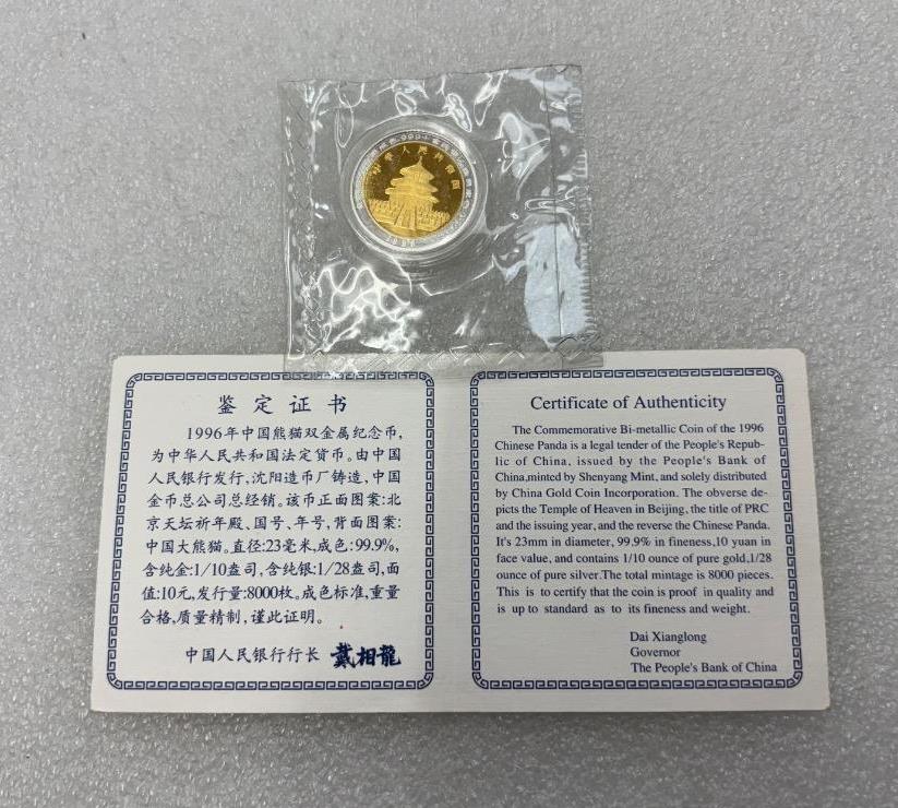 → 1996年1/10盎司双金属熊猫金银币1枚