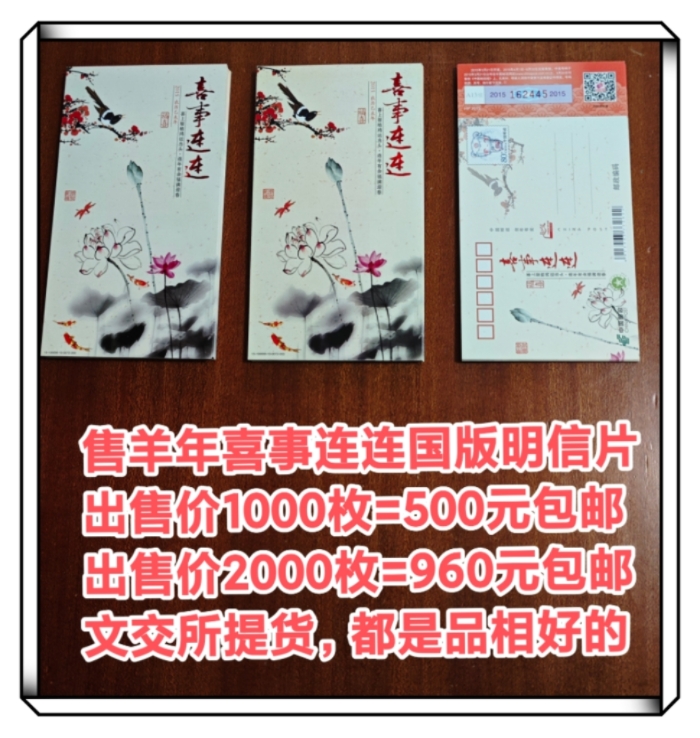 → 0.5一枚出售羊年羊邮资图国版喜事连连明信片2400枚