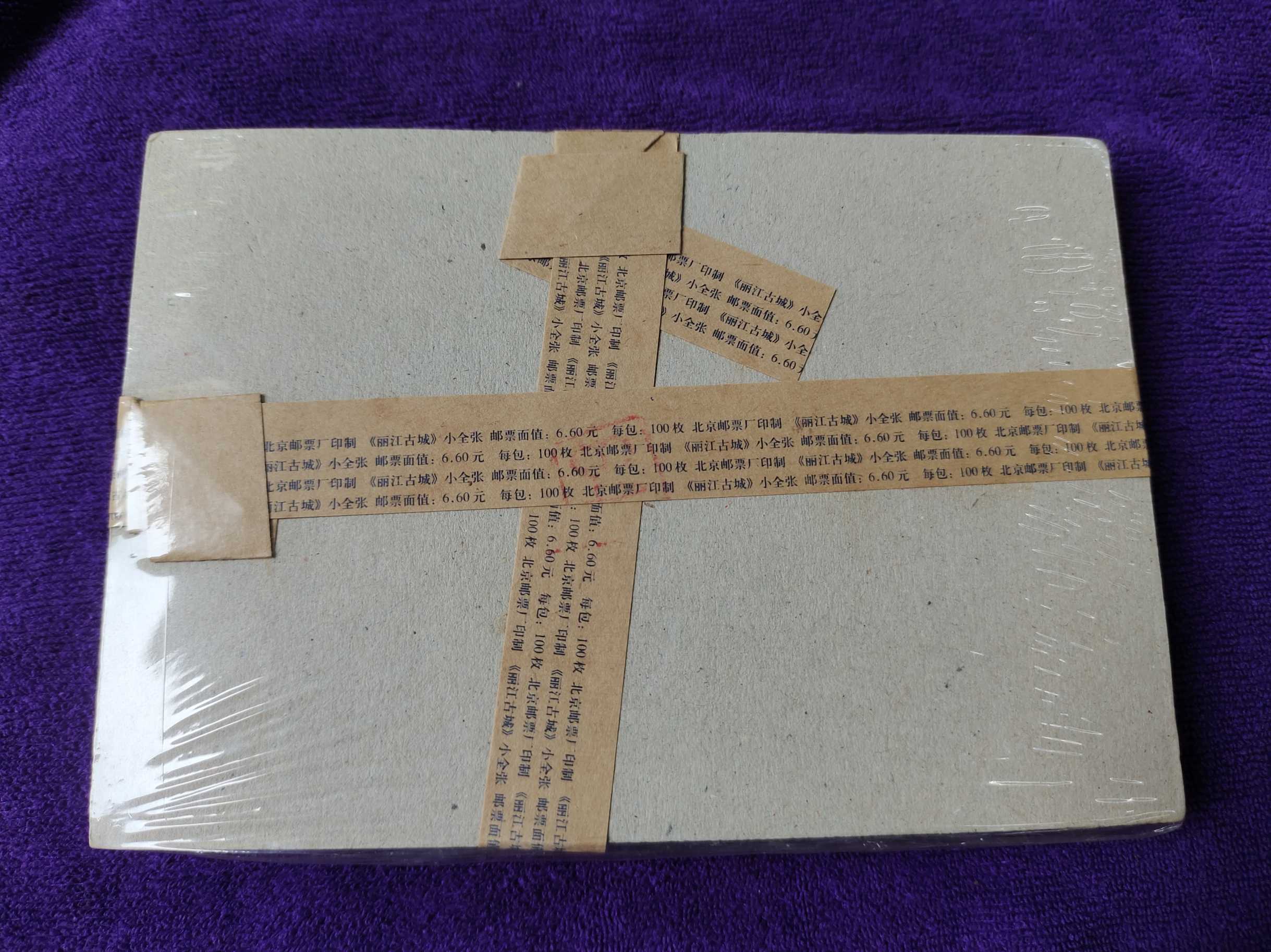 如图:02年丽江古城小全张原封带号,倒面塑料袋内有轻微黄点,260元包邮到手。