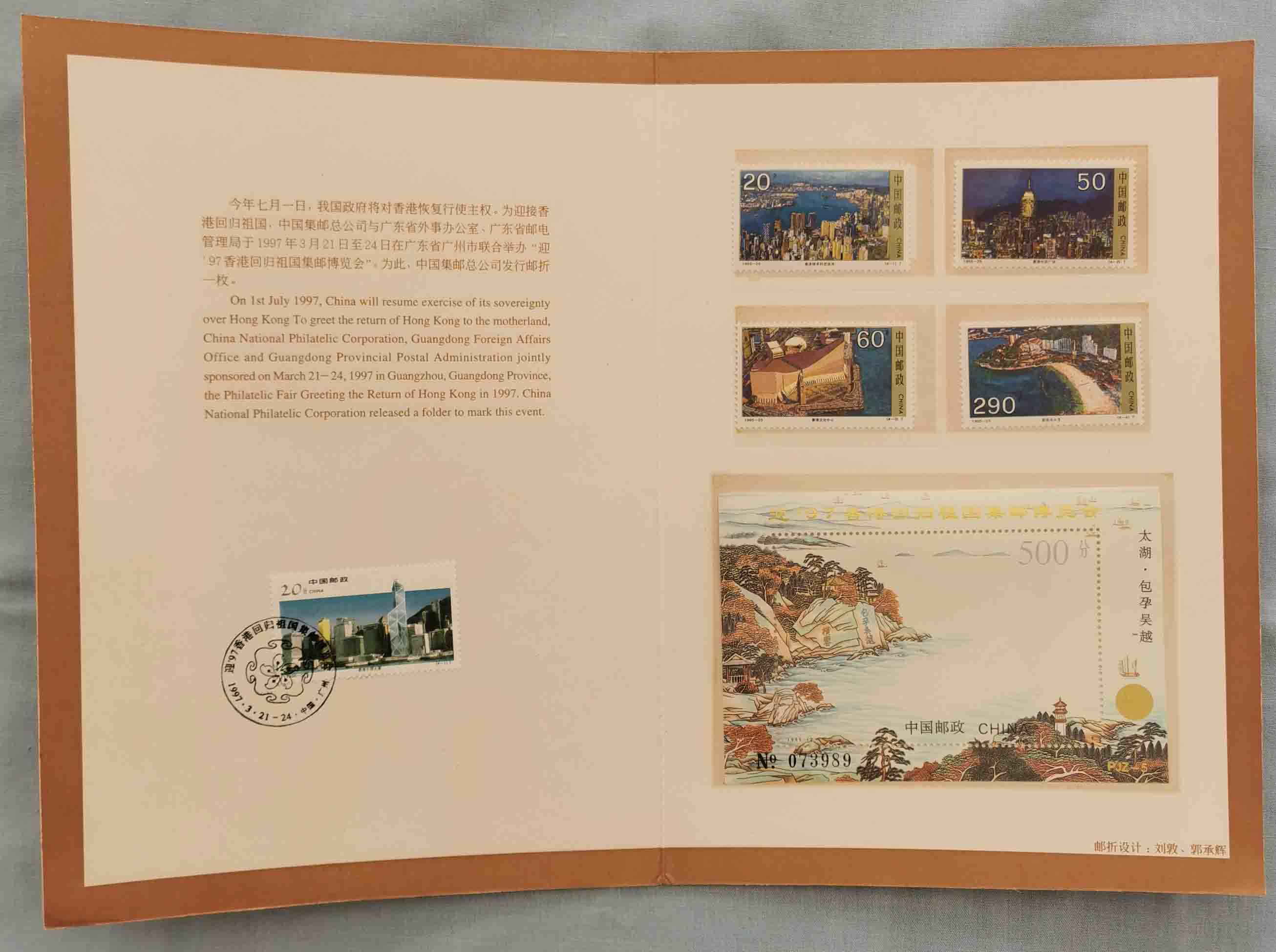 出售太湖加字小型张及香港建设邮票(一组4.2元)
