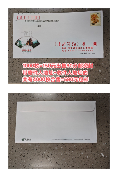 1000枚=150元出售80分带地址封4000枚