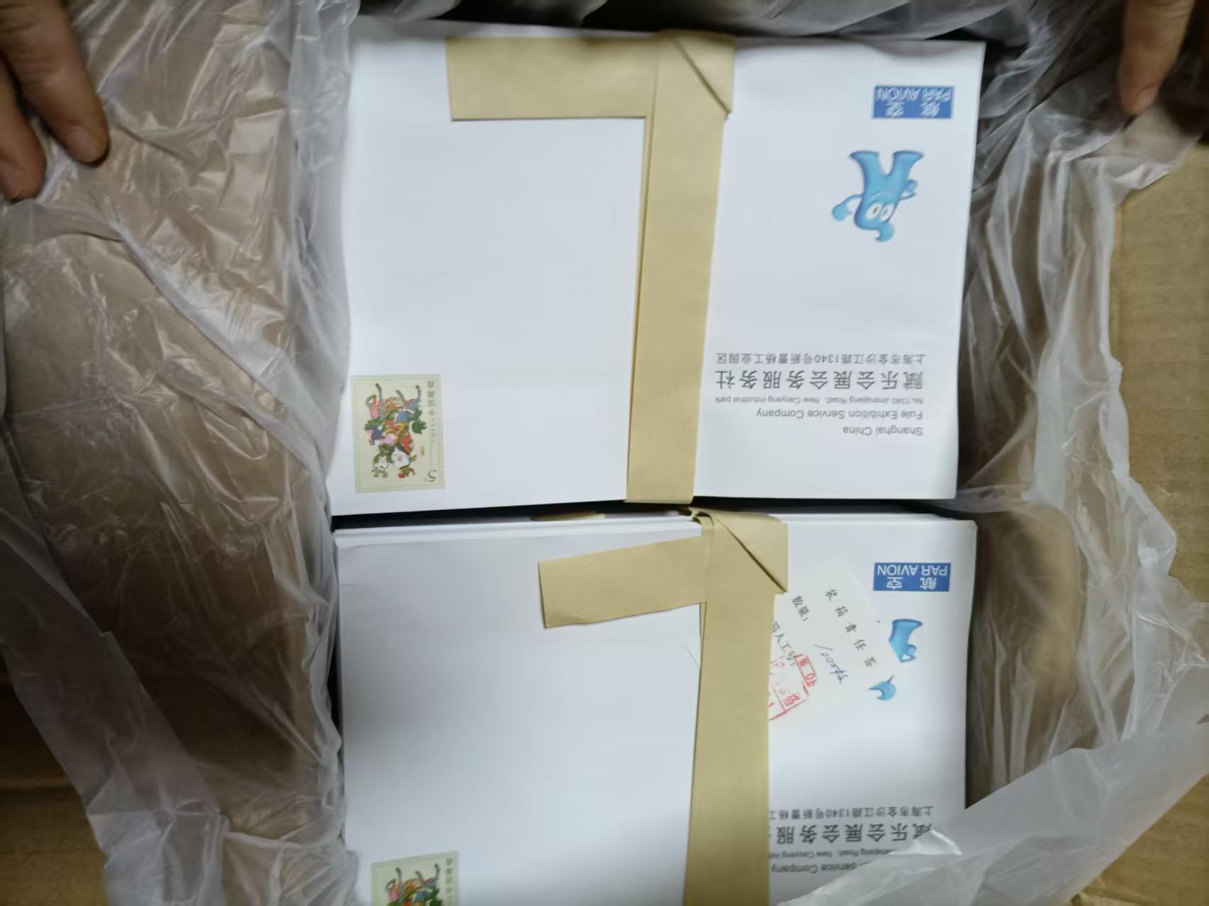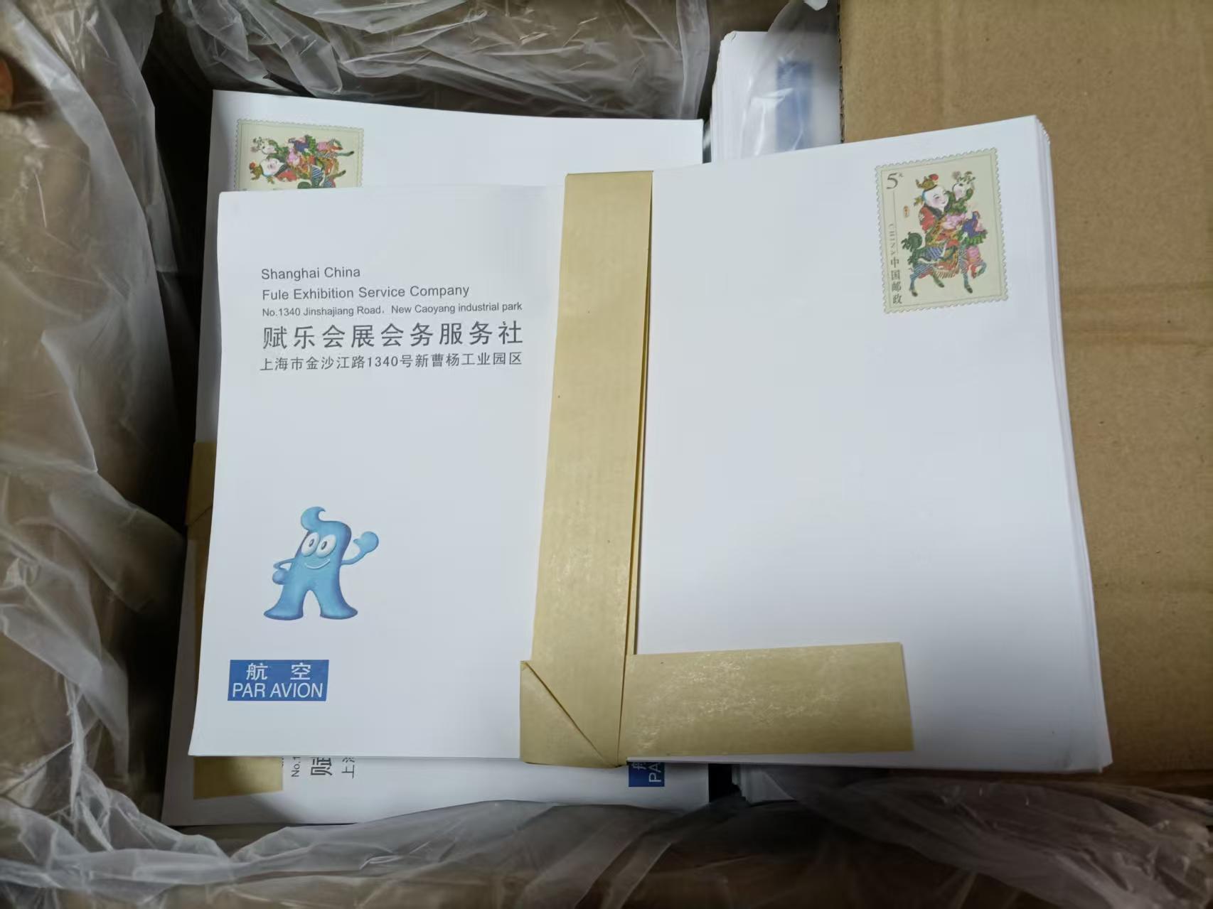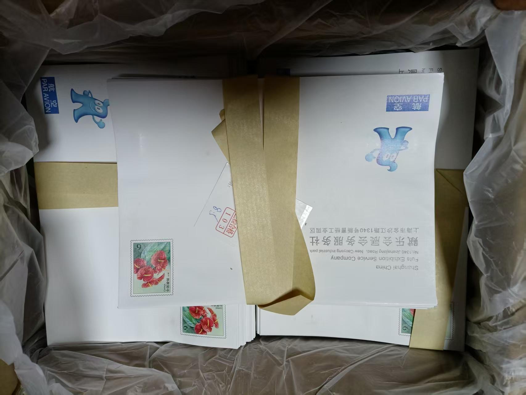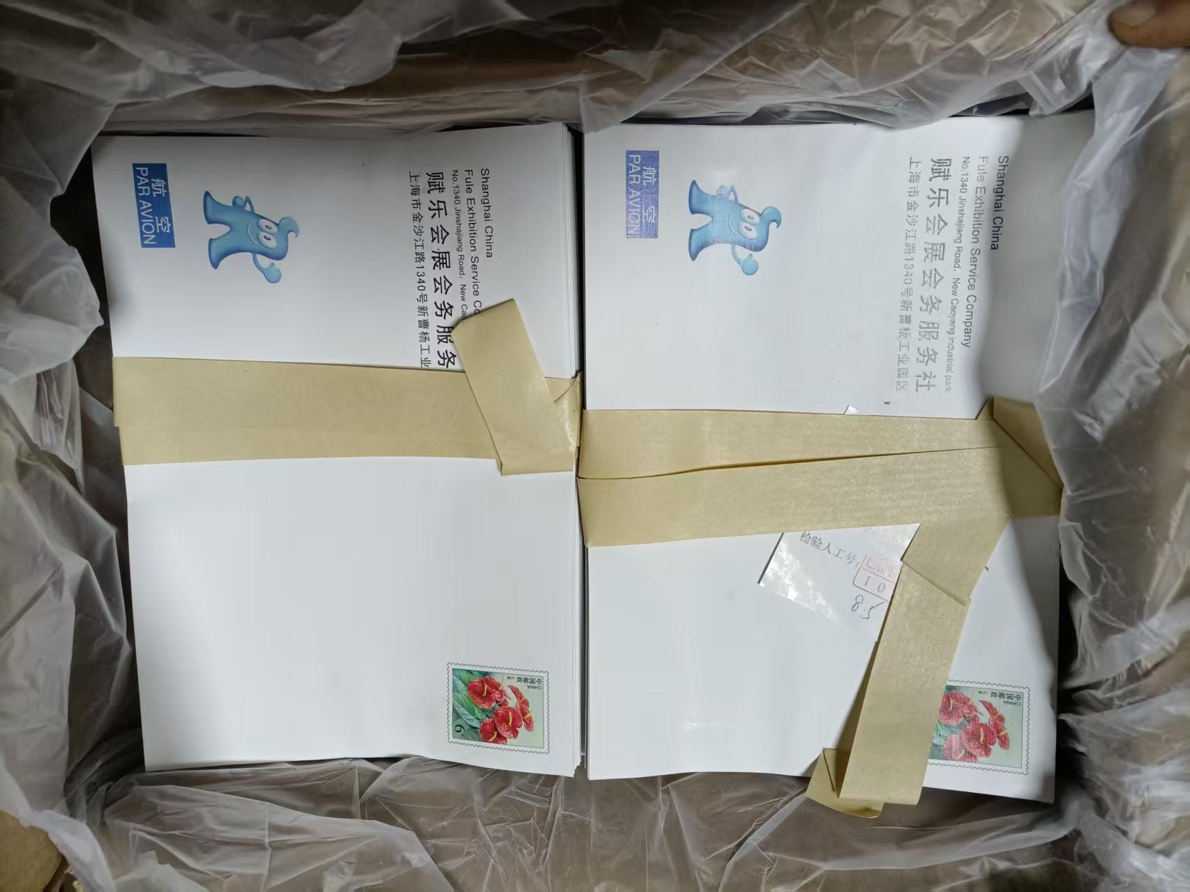 售5元航空封,如图,原箱,共4箱,售1.5元一封,6元航空封,如图,原箱,共4箱,售1.75元一封.